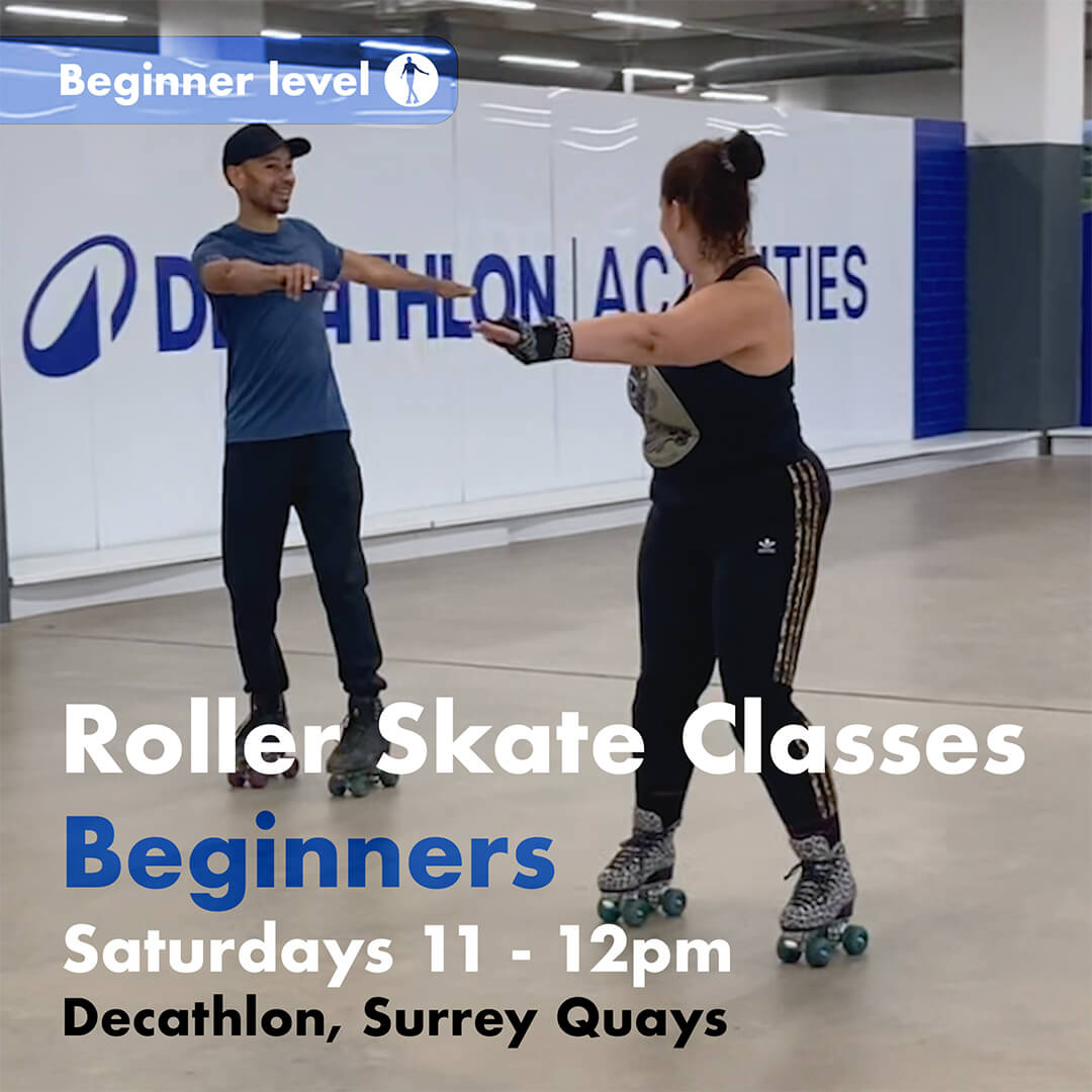 Group and private indoor roller skate classes. Join us in a calm and supportive atmosphere with sessions from beginner through to intermediate and advanced levels.