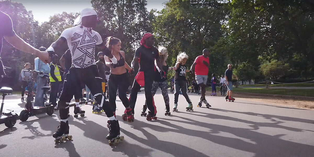 The London skate community has flourished over the last few years. While the interest has grown, so has the need to find spaces to roller skate. Parks, basketball courts, bandstands, carparks, and any flat areas with a decent amount of space and a skateable surface have become havens for skaters. Additionally, pop-up roller discos and open practice sessions in sports halls and community centres have given people time and space to continue skating through the winter. These little pockets can be great places to practice and meet other skaters.